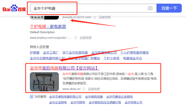 金華市奧*電器有限公司關鍵詞推廣保證在首頁效果