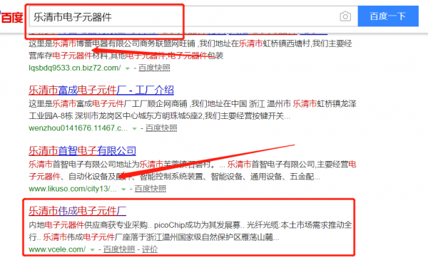我們公司與樂清市偉成電子元件廠合作中,對這個公司所經營的電子元器件這個行業提供了百度快照排名,與該公司的合作,更多的客戶讓我們公司為其提供百度快照排名,通過每一次合作,我們公司不斷完善自己,同時希望合作伙伴在經營的路上越來越好。