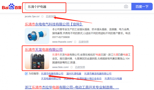 樂清市天*電器有限公司關鍵詞推廣營銷+精準獲客