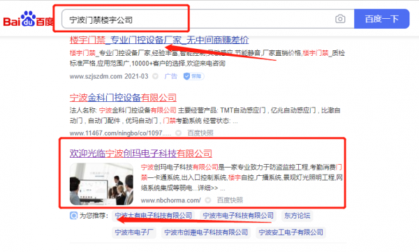 寧波創*電子科技有限公司選用我司企業門禁樓宇的網站優化產品,其SEO關鍵詞有門禁樓宇。關鍵詞不限點擊次數,大量搜索流量直達官網;PC + 手機端搜索首頁自然排名,365天持效穩定收錄。寧波創*電子科技有限公司成立于2014年,是經寧波市市場監督管理局審核的有資質的公司,其統一社會信用代碼:913302030**76397X8。公司地址:浙江省寧波市海曙區大河頭路65號3幢208室。