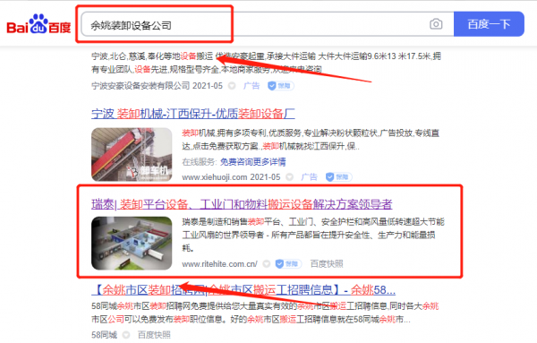 我們公司與浙江瑞*包裝機械有限公司合作中,對這個公司所經營的裝卸設備這個行業提供了SEO,與該公司的合作,更多的客戶讓我們公司為其提供關鍵詞搜索排名,通過每一次合作,我們公司不斷完善自己,同時希望合作伙伴在經營的路上越來越好。