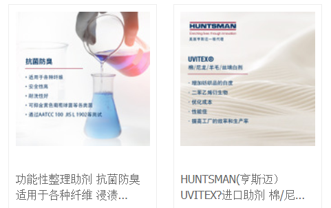 紹興市久*化工有限公司系美國亨斯邁一級代理,臺灣永光、日本住友、科萊恩、魯?shù)婪颉⒑檀蠊尽⑦~圖有機(jī)硅有限公司、日本旭硝子、上海萬得、上海十廠、青島雙桃等國內(nèi)知名廠家的銷售點,價格優(yōu)惠,歡迎面洽,并提供技術(shù)咨詢。 主營:中高檔活性染料、分散染料、酸性染料、中性染料、還原染料、直接染料、進(jìn)口助劑、助劑原材料。同時供應(yīng)防水、防污、抗菌、抗皺、抗紫外線、吸濕排汗、超級柔軟等功能性整理助劑. 2012年新品:超高牢度分散染料SFN+EL-SF超級穩(wěn)定劑,帶給您的是更簡單、更穩(wěn)定、更高效的染色整體解決方案。 希望我們提供的高品質(zhì)染料助劑,優(yōu)良的服務(wù),能帶給您更絢麗的色彩,使您的企業(yè)更加燦爛輝煌!