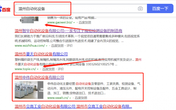 我們公司與溫州*偉自動化設備有限公司合作中,對這個公司所經營的自動化設備這個行業提供了百度快照排名,與該公司的合作,更多的客戶讓我們公司為其提供百度快照排名,通過每一次合作,我們公司不斷完善自己,同時希望合作伙伴在經營的路上越來越好。