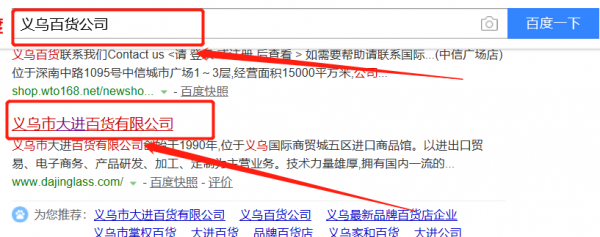 我們公司與義烏市大進百貨有限公司合作中,對這個公司所經營的百貨這個行業提供了關鍵詞搜索排名,與該公司的合作,更多的客戶讓我們公司為其提供關鍵詞搜索排名,通過每一次合作,我們公司不斷完善自己,同時希望合作伙伴在經營的路上越來越好。