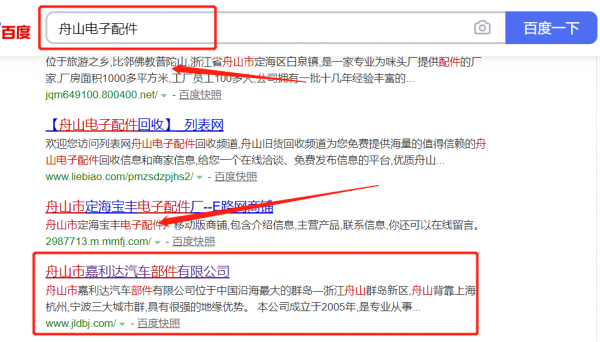 我們公司與舟山市*利達汽車部件有限公司合作中,對這個公司所經營的電子配件這個行業提供了優化排名,與該公司的合作,更多的客戶讓我們公司為其提供搜索引擎優化推廣,通過每一次合作,我們公司不斷完善自己,同時希望合作伙伴在經營的路上越來越好。