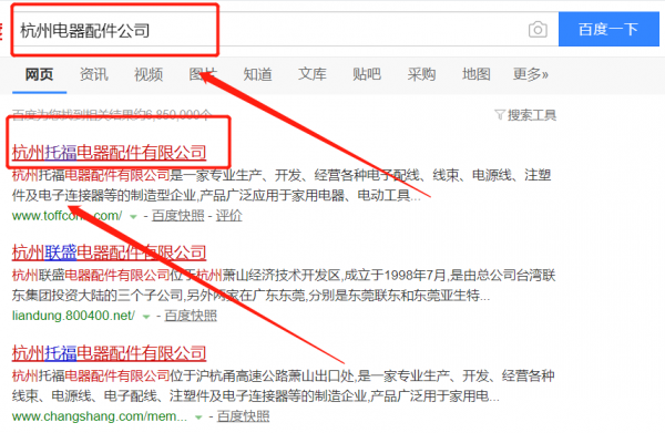 杭州托福電器配件有限公司選用我司企業電器配件行業的網站優化產品,其SEO關鍵詞有電器配件。按天計費,最快7天上詞,不到首頁不扣費。關鍵詞質量保證,白帽SEO符合百度算法,360、搜狗、移動端等排名效果免費贈送。杭州托福電器配件有限公司成立于2003年,是經杭州市市場監督管理局審核的有資質的公司,其統一社會信用代碼:91330109749488212F。公司地址:浙江省杭州市蕭山區寧圍街道二橋村。