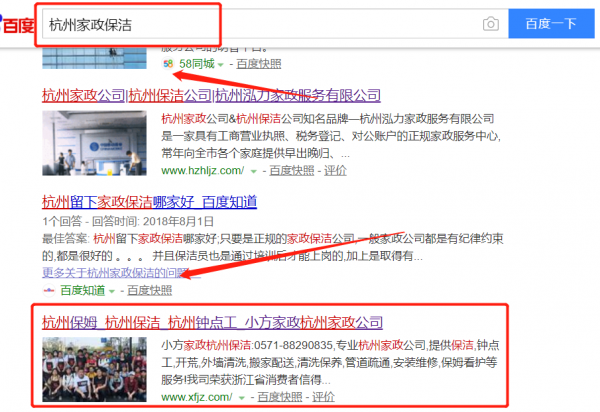 杭州小方家政服務有限公司選用我司企業家政保潔的網站優化產品,其SEO關鍵詞有家政保潔。搜索品牌詞,首頁至少霸占5條,通過營銷型網站、媒體文章、口碑等方式,達到全方位霸屏,全面展示企業實力。杭州小方家政服務有限公司成立于2003年,是經杭州市市場監督管理局審核的有資質的公司,其統一社會信用代碼:913301050888870713。公司地址:浙江省杭州市拱墅區錦昌文華苑120號二層。