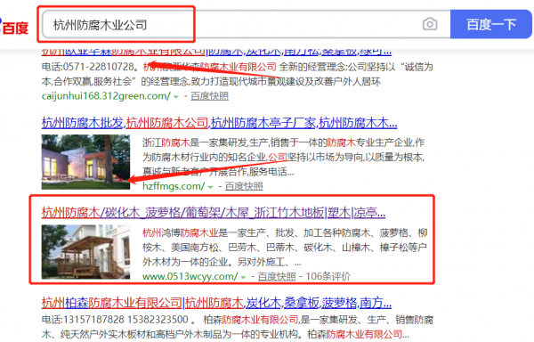 杭州*博防腐木業公司選用我司企業防腐木業的網站優化產品,其SEO關鍵詞有防腐木業。無論你關鍵詞是在20名內、30名內、還是50名內。我們都可以在最短時間優化至搜索引擎的首頁。提供后臺管理,排名查詢、關鍵詞管理、財務扣費一目了然,一鍵操作。杭州*博防腐木業公司成立于2017年,是經杭州市市場監督管理局審核的有資質的公司,其統一社會信用代碼:92330109M**8RQDC77。公司地址:浙江省杭州市蕭山區寧圍街道新華村浙江世紀建筑裝飾市場29幢113、114號。
