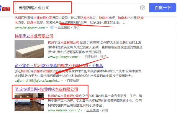 杭州*成木業有限公司選用我司企業防腐木業的網站優化產品,其SEO關鍵詞有防腐木業。無論你關鍵詞是在20名內、30名內、還是50名內。我們都可以在最短時間優化至搜索引擎的首頁。提供后臺管理,排名查詢、關鍵詞管理、財務扣費一目了然,一鍵操作。杭州*成木業有限公司成立于2001年,是經杭州市市場監督管理局審核的有資質的公司,其統一社會信用代碼:91330109**84484575。公司地址:浙江省杭州市蕭山區所前鎮山聯村。