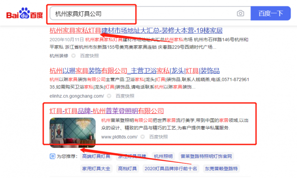 杭州普*登照明有限公司關鍵詞排名到首頁按天扣費