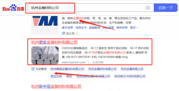 杭州*實(shí)金屬材料有限公司百度排名專注一站式品牌營銷整合推廣