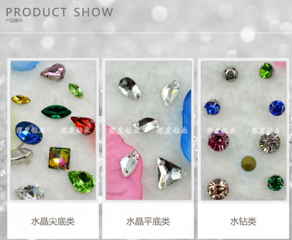 杭州深度服裝輔料有限公司,簡稱深度鉆業(yè),成立于2008年,是一家專業(yè)致力于水晶生產(chǎn)制造、設(shè)計加工和銷售為一體的多元化企業(yè)。我們主要致力于為國內(nèi)外中高檔品牌服裝、鞋冒客戶和廣大喜愛水晶飾品的終端消費者提供專業(yè)服務(wù)。主要產(chǎn)品有水鉆、水晶鉆、水晶飾品和掛件等。深度鉆業(yè)一直秉承“創(chuàng)新求引領(lǐng),因為專業(yè)所以不凡”的發(fā)展理念,一直致力于產(chǎn)品和服務(wù)的雙重持續(xù)創(chuàng)新!截止目前,公司擁有生產(chǎn)研發(fā)、飾品設(shè)計和配套五金研發(fā)的三個專業(yè)創(chuàng)新團隊,以及擁有一個水晶生產(chǎn)工廠、一個五金生產(chǎn)工廠、三個組裝基地和覆蓋全國一線城市的四個銷售網(wǎng)點。