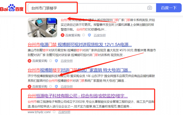 臺州*源電子科技有限公司選用我司企業門禁樓宇的網站優化產品,其SEO關鍵詞有門禁樓宇。從站內到站外,人工智能全新搜索優化技術,最快7天關鍵詞排名上首頁,利用互聯網營銷手法,多平臺,多樣化進行品牌內容鋪設,營造企業正面形象。臺州*源電子科技有限公司成立于2002年,是經臺州市市場監督管理局審核的有資質的公司,其統一社會信用代碼:91331002**313967XU。公司地址:浙江省臺州市椒江區太平洋大廈2幢4單元601室。