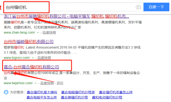 臺州嘉合縫紉機有限公司與我司簽下百度霸屏協議