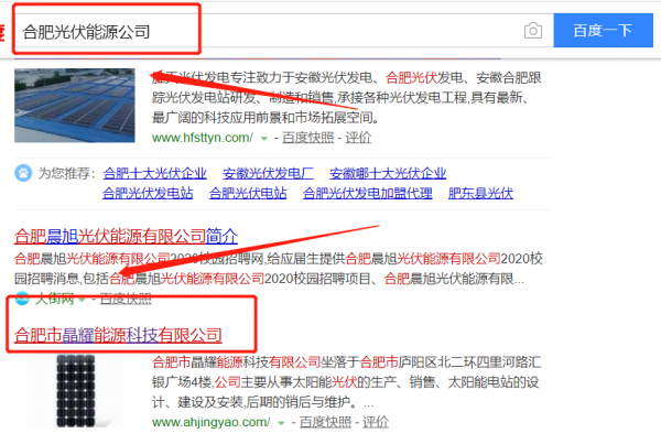 我們公司與合肥市晶耀能源科技有限公司合作中,對這個公司所經營的光伏能源這個行業提供了百度快照排名,與該公司的合作,更多的客戶讓我們公司為其提供百度快照排名,通過每一次合作,我們公司不斷完善自己,同時希望合作伙伴在經營的路上越來越好。