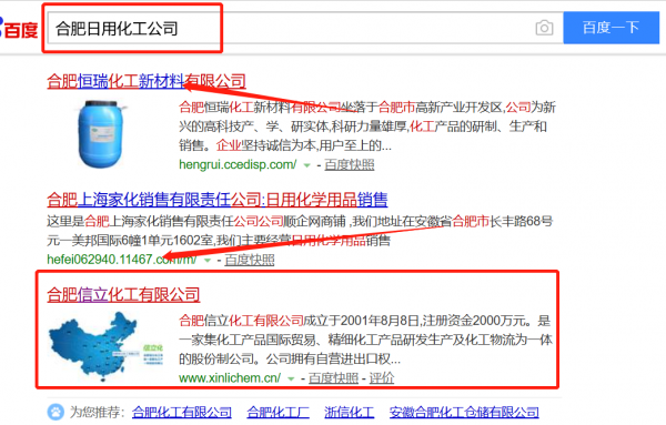 合肥信立化工有限公司選用我司企業日用化工的網站優化產品,其SEO關鍵詞有日用化工。一對一定制服務,產品經理在線支持,無憂售后,適用于各個企業,提供一站式網絡營銷服務。百度搜索引擎優化,提升品牌關鍵詞的正面內容信息展現,體現良好的口碑宣傳。合肥信立化工有限公司成立于2001年,是經合肥市市場監督管理局審核的有資質的公司,其統一社會信用代碼:913401007300330316。公司地址:安徽省合肥市金寨路155號黃金廣場2幢204室。