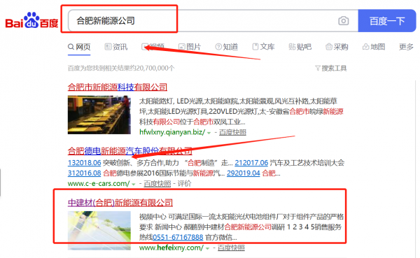 我們公司與中*材(合肥)新能源有限公司合作中,對(duì)這個(gè)公司所經(jīng)營(yíng)的新能源這個(gè)行業(yè)提供了百度快照排名,與該公司的合作,更多的客戶讓我們公司為其提供百度快照排名,通過(guò)每一次合作,我們公司不斷完善自己,同時(shí)希望合作伙伴在經(jīng)營(yíng)的路上越來(lái)越好。