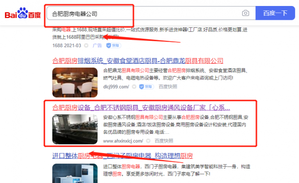 安徽*系不銹鋼廚具制品有限公司網絡推廣排名效果展示