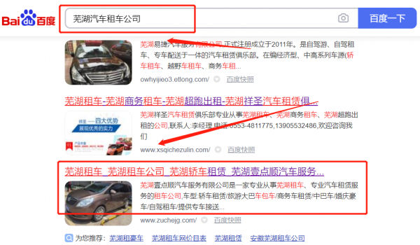 蕪湖壹*順汽車服務有限公司選用我司企業汽車租車行業的網站優化產品,其SEO關鍵詞有汽車租車。快速優化系統火速推采用智能數據系統,效果一目了然,包括關鍵詞排名,消費,余額等,并通過大量的數據分析優化廣告效果。蕪湖壹*順汽車服務有限公司成立于2015年,是經蕪湖市市場監督管理局審核的有資質的公司,其統一社會信用代碼:913402003**057414P。公司地址:安徽省蕪湖市鏡湖區團結東路7號。