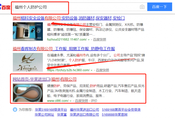 華*進出口(福州)有限公司選用我司企業個人防護的網站優化產品,其SEO關鍵詞有個人防護。搜索品牌詞,首頁至少霸占5條,通過營銷型網站、媒體文章、口碑等方式,達到全方位霸屏,全面展示企業實力。華*進出口(福州)有限公司成立于1997年,是經福州市市場監督管理局審核的有資質的公司,其統一社會信用代碼:91350111**9354816D。公司地址:福建省福州市晉安區長樂中路296號興川大廈5層113號單元。