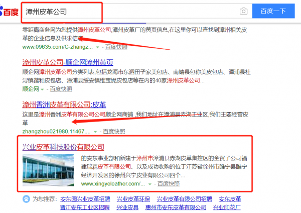 興*皮革科技股份有限公司選用我司企業皮革的網站優化產品,其SEO關鍵詞有皮革。無論你關鍵詞是在20名內、30名內、還是50名內。我們都可以在最短時間優化至搜索引擎的首頁。提供后臺管理,排名查詢、關鍵詞管理、財務扣費一目了然,一鍵操作。興*皮革科技股份有限公司成立于1992年,是經晉江市市場監督管理局審核的有資質的公司,其統一社會信用代碼:91350000**4341545Q。公司地址:福建省晉江市安海第二工業區興業路1號(經營場所:晉江經濟開發區安東園園東大道28號)。