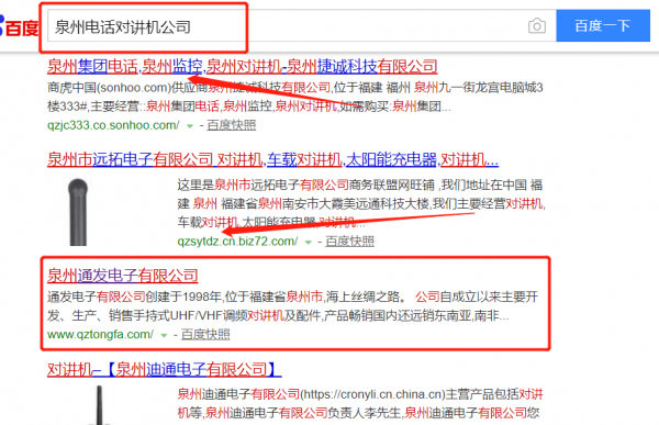 我們公司與泉州市通發(fā)電子有限公司合作中,對(duì)這個(gè)公司所經(jīng)營的電話對(duì)講機(jī)這個(gè)行業(yè)提供了關(guān)鍵詞搜索排名,與該公司的合作,更多的客戶讓我們公司為其提供關(guān)鍵詞搜索排名,通過每一次合作,我們公司不斷完善自己,同時(shí)希望合作伙伴在經(jīng)營的路上越來越好。