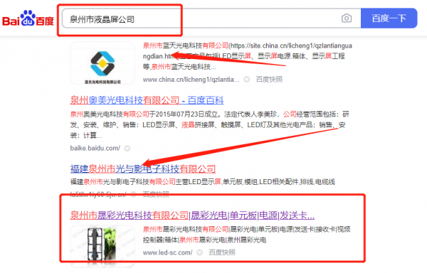 泉州市晟*光電科技有限公司網站排名排名案例欣賞