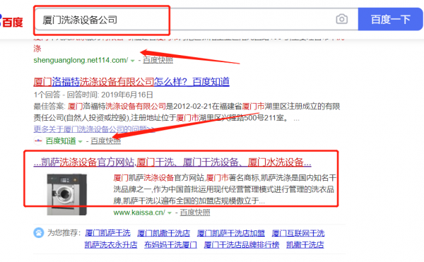 廈門市*薩洗滌有限公司網絡推廣排名效果展示