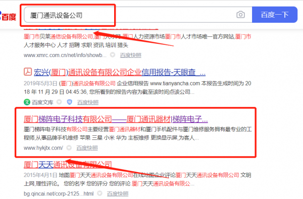 廈門*陣電子科技有限公司百度排名案例欣賞