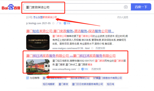 廈門旭*鴻家政服務有限公司整站優(yōu)化排名效果展示