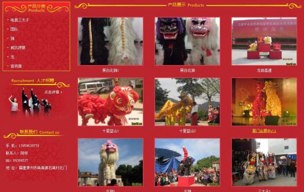 漳州市*藝文化傳媒有限公司參加2005漳州市政府舉辦的青年杯首屆獅王爭霸賽,我隊以精湛逼真的演藝一舉奪冠,獲得北獅王榮譽.配合過中國八一制片廠拍攝由蔣委麗主演的“臺灣往事“鄭和下西洋等影片受到了好評.經歷過無數大型的廟會,奠基,剪彩,廣告促銷的慶典活動業務范圍:舞龍(男女)舞獅(南北),威風鑼鼓,水鼓,舞蹈,樂隊,腰鼓,大開道,大鼓涼傘,踩高翹,電音三太子等歡迎來電咨詢
