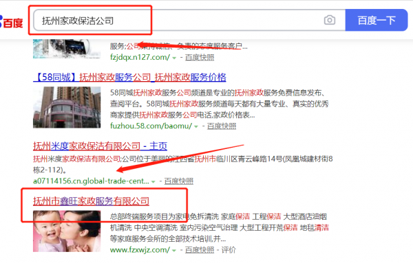 我們公司與撫州市*旺家政服務有限公司合作中,對這個公司所經營的家政保潔這個行業提供了SEO優化,與該公司的合作,更多的客戶讓我們公司為其提供SEO優化,通過每一次合作,我們公司不斷完善自己,同時希望合作伙伴在經營的路上越來越好。