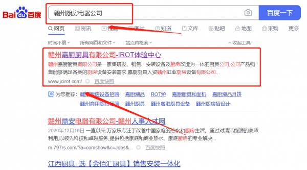贛州嘉*廚具有限公司網站排名最快上詞效果展示