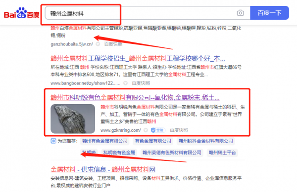 贛州市科*銳有色金屬材料有限公司網絡營銷排名效果展示