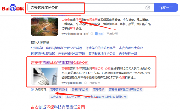 吉安市吉*環保節能材料有限公司選用我司企業環境保護的網站優化產品,其SEO關鍵詞有環境保護。一對一定制服務,產品經理在線支持,無憂售后,適用于各個企業,提供一站式網絡營銷服務。百度搜索引擎優化,提升品牌關鍵詞的正面內容信息展現,體現良好的口碑宣傳。吉安市吉*環保節能材料有限公司成立于2010年,是經吉安市市場監督管理局審核的有資質的公司,其統一社會信用代碼:913608006**477627Y。公司地址:江西省吉安市吉州區工業園。