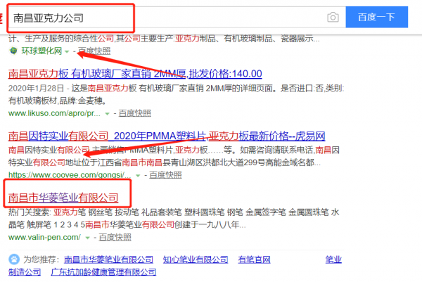 我們公司與南昌市華菱筆業有限公司合作中,對這個公司所經營的亞克力這個行業提供了關鍵詞搜索排名,與該公司的合作,更多的客戶讓我們公司為其提供關鍵詞搜索排名,通過每一次合作,我們公司不斷完善自己,同時希望合作伙伴在經營的路上越來越好。