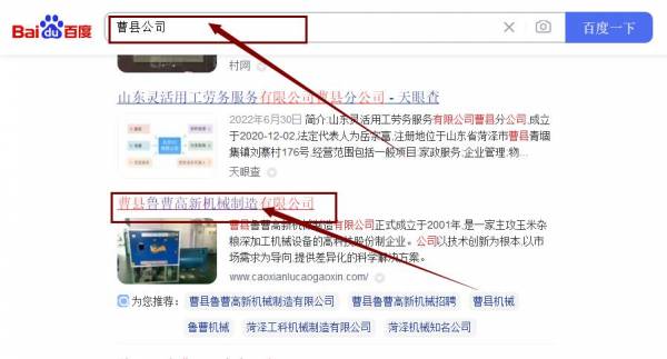 曹縣魯曹高*機械機械制造有限公司網站排名效果展示