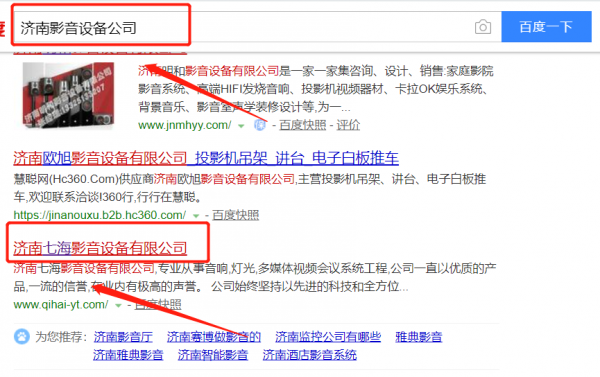 我們公司與濟(jì)南七海影音設(shè)備有限公司合作中,對(duì)這個(gè)公司所經(jīng)營的影音設(shè)備這個(gè)行業(yè)提供了百度快照排名,與該公司的合作,更多的客戶讓我們公司為其提供百度快照排名,通過每一次合作,我們公司不斷完善自己,同時(shí)希望合作伙伴在經(jīng)營的路上越來越好。