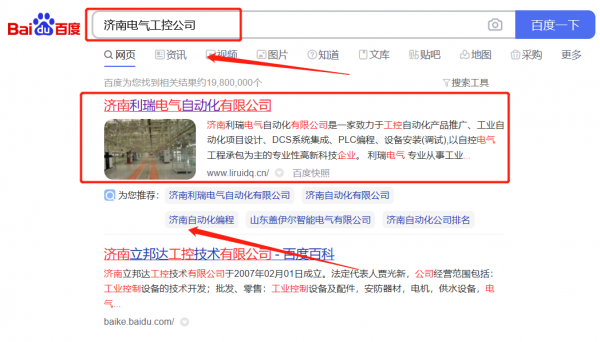 濟南利*電氣自動化有限公司百度排名效果展示