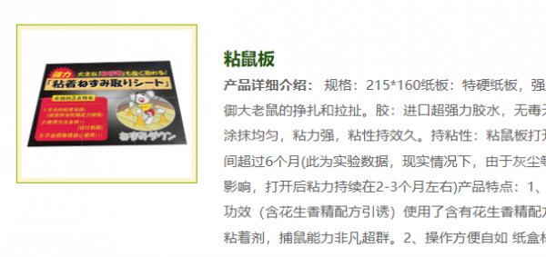 青島利雅日用化工品有限公司是一家日本獨資企業,位于青島經濟技術開發區保稅區內,于2005年投資建立。主要生產各種規格的粘鼠板、粘蟑螂板.粘蟲紙等小動物捕獲黏著板以及提供專業的害蟲治理服務。我公司擁有日本進口的生產線以及日本研發的粘鼠膠生產技術,以生產能力強,質量上乘、研發創新實力雄厚而著稱業界。生產的粘鼠板、粘蟑螂板、粘蟲紙等完全依靠物理膠粘作用捕獲和殺死老鼠、蟑螂、螞蟻等爬蟲和飛蟲,粘著性強,持久力強,是無毒、無害、無污染的具有環保特點的產品。本公司本著精益求精、發展創新的態度,沒有最好,只有更好,我們一直把能提供優質、高效、安全、環保的產品作為我們發展的目標。現在產品主要銷往日本、臺灣等地,受到國內外客戶的一致好評,我們更注重在國內的發展,愿為國內廣大用戶提供安全有效的產品和更優質害蟲治理服務。同時承接品牌代加工業務,我們會以最優質的產品質量、最快捷的生產周期、最優惠的加工價格,給您提供最滿意的代加工服務。選擇利雅,選擇利雅產品,讓您生活無憂。