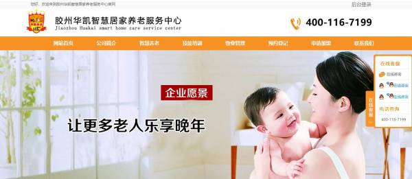 膠州華凱智慧居家養老服務中心選用我司企業居家養老行業的網站優化產品,其SEO關鍵詞有 膠州華凱智慧居家養老服務中心。其特點是用很合適的展示方式、展示效果、站點框架,把客戶及其用戶很關心的問題突出表現;并以簡潔明朗的設計風格,清晰展現公司水平實力,確保一秒抓住目標用戶眼球,給用戶留下良好的第一印象。膠州華凱智慧居家養老服務中心成立于2014年,是經青島市市場監督管理局審核的有資質的公司,其統一社會信用代碼:52370281MJD979805R 。公司地址:山東省青島市膠州市福州南路33號富民廣場北門