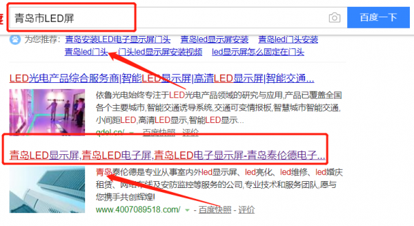 我們公司與青島泰倫德電子工程有限公司合作中,對這個公司所經營的LED屏這個行業提供了SEO推廣,與該公司的合作,更多的客戶讓我們公司為其提供SEO推廣,通過每一次合作,我們公司不斷完善自己,同時希望合作伙伴在經營的路上越來越好。