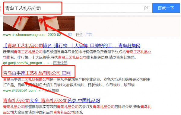 我們公司與青島百事德工藝禮品有限公司合作中,對這個公司所經營的工藝禮品這個行業提供了百度快照排名,與該公司的合作,更多的客戶讓我們公司為其提供百度快照排名,通過每一次合作,我們公司不斷完善自己,同時希望合作伙伴在經營的路上越來越好。