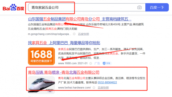 青島北*五金有限公司選用我司企業(yè)家居五金的網(wǎng)站優(yōu)化產(chǎn)品,其SEO關(guān)鍵詞有家居五金。一對一定制服務(wù),產(chǎn)品經(jīng)理在線支持,無憂售后,適用于各個企業(yè),提供一站式網(wǎng)絡(luò)營銷服務(wù)。百度搜索引擎優(yōu)化,提升品牌關(guān)鍵詞的正面內(nèi)容信息展現(xiàn),體現(xiàn)良好的口碑宣傳。青島北*五金有限公司成立于1999年,是經(jīng)青島市市場監(jiān)督管理局審核的有資質(zhì)的公司,其統(tǒng)一社會信用代碼:913702821**947709E。公司地址:山東省青島市即墨市環(huán)秀街道辦事處小韓村。