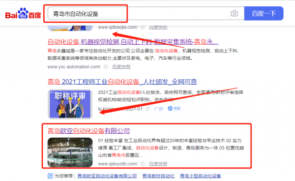 青島*亞自動化設備有限公司網絡推廣排名效果展示