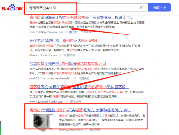 我們公司與青州市興*溫控設備廠合作中,對這個公司所經營的園藝設備這個行業提供了關鍵詞排名,與該公司的合作,更多的客戶讓我們公司為其提供搜索引擎優化推廣,通過每一次合作,我們公司不斷完善自己,同時希望合作伙伴在經營的路上越來越好。
