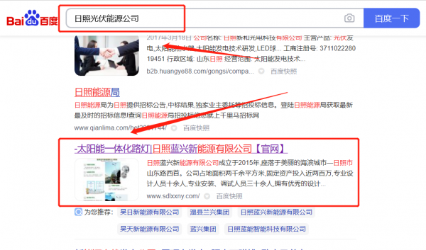 日照藍*新能源有限公司百度關鍵詞排名營銷+精準獲客
