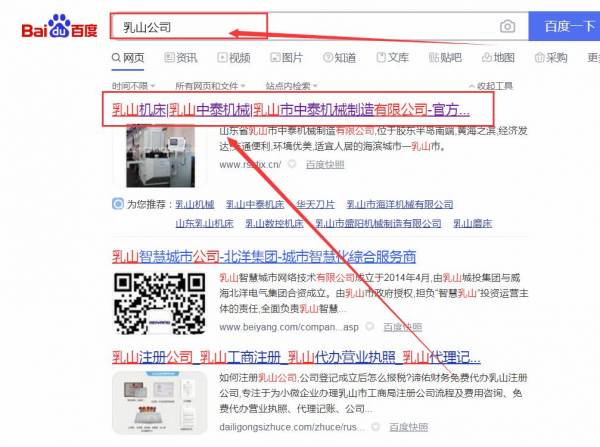 乳山市中*機械制造有限公司網站優化排名效果展示