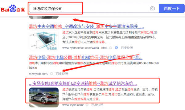 我們公司與濰坊誠*信汽車維修有限公司合作中,對這個公司所經營的改裝維保這個行業提供了網站SEO優化,與該公司的合作,更多的客戶讓我們公司為其提供百度快照排名,通過每一次合作,我們公司不斷完善自己,同時希望合作伙伴在經營的路上越來越好。
