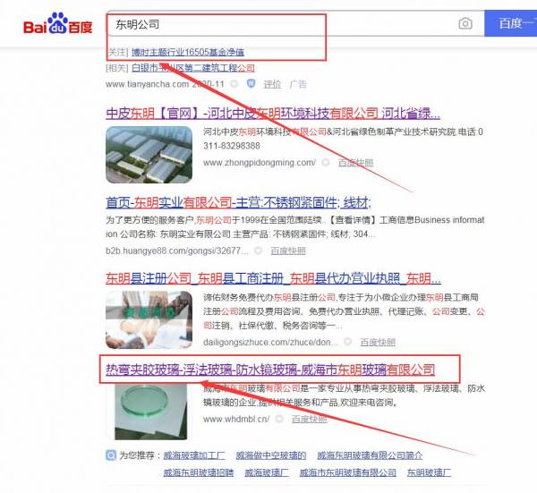 威海市東*玻璃有限公司網(wǎng)站優(yōu)化最快上詞效果展示